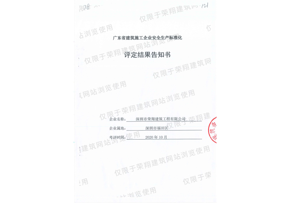 广东省建筑施工企业安全生产标准化评定结果告知书