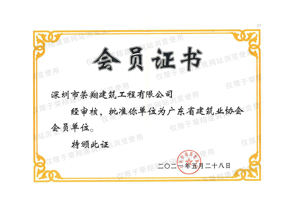 广东省建筑业协会会员证书