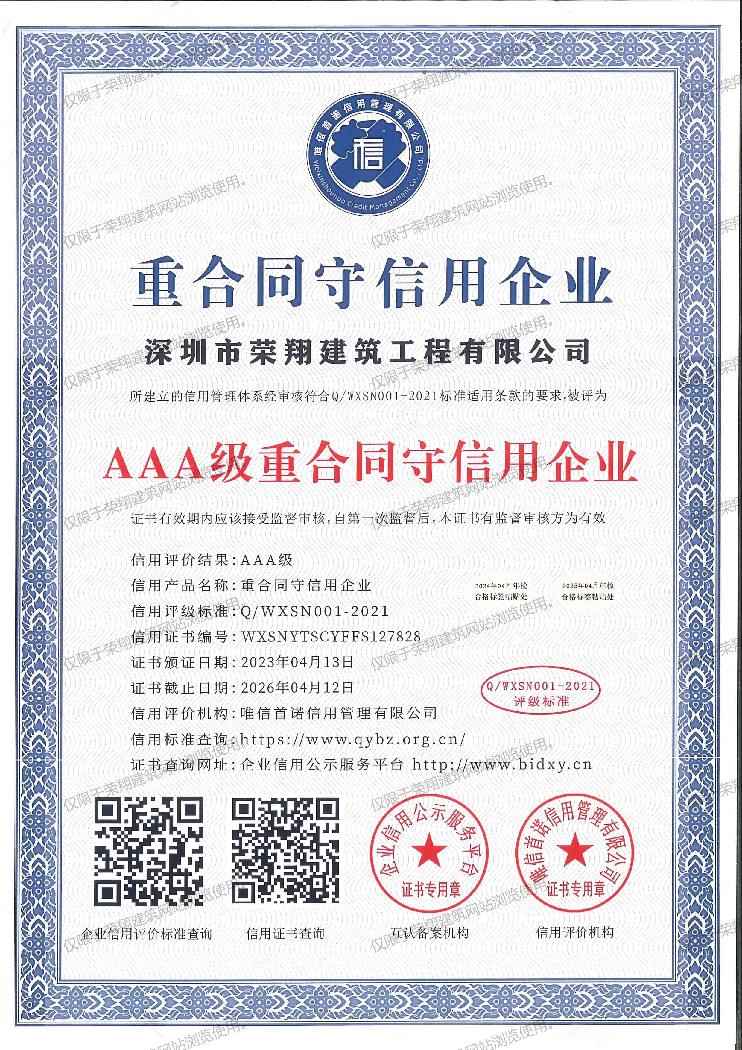 AAA级重合同守信用企业