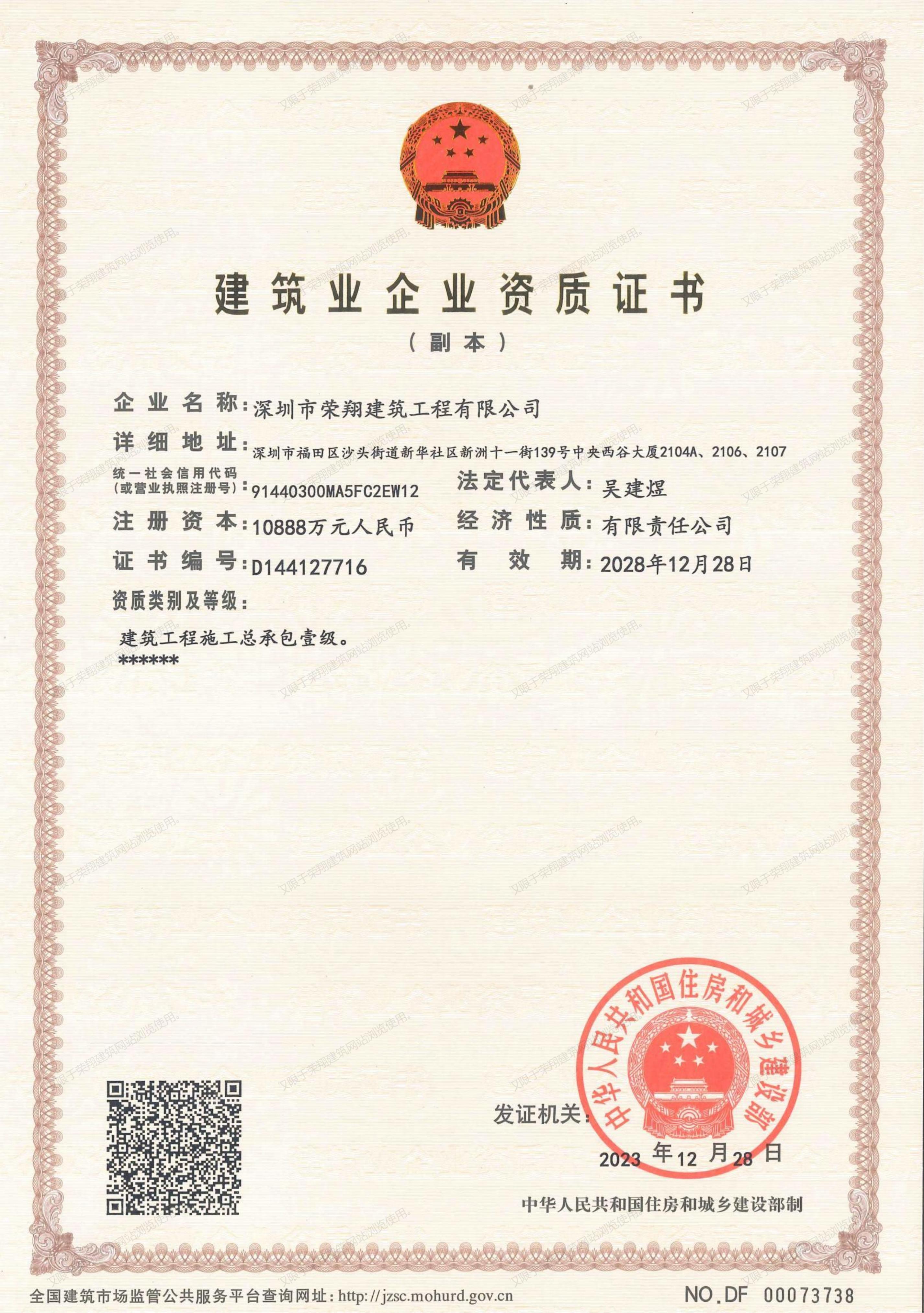 住建部资质证书